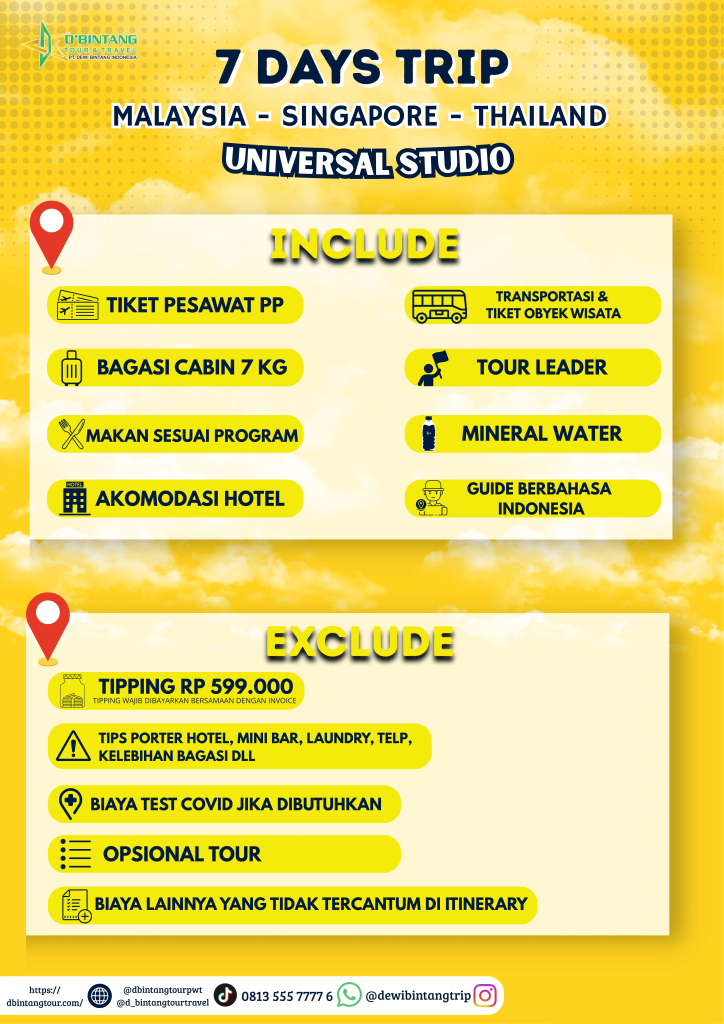 Itinerary Tour 3 Negara 7 Hari 6 Malam