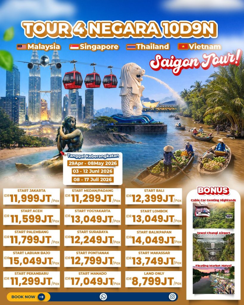 Paket tour 4 negara Malaysia Singapore Thailand Vietnam ini menawarkan pengalaman wisata lengkap dalam satu perjalanan.