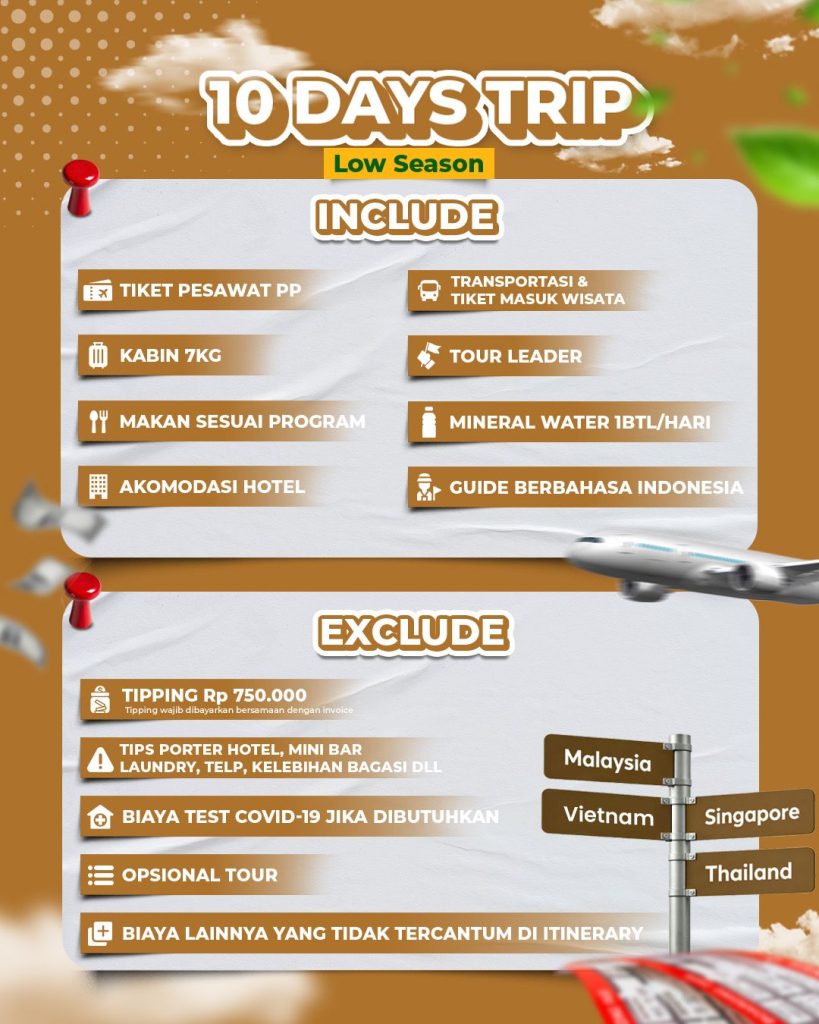 Itinerary Tour 4 Negara 10 Hari 9 Malam